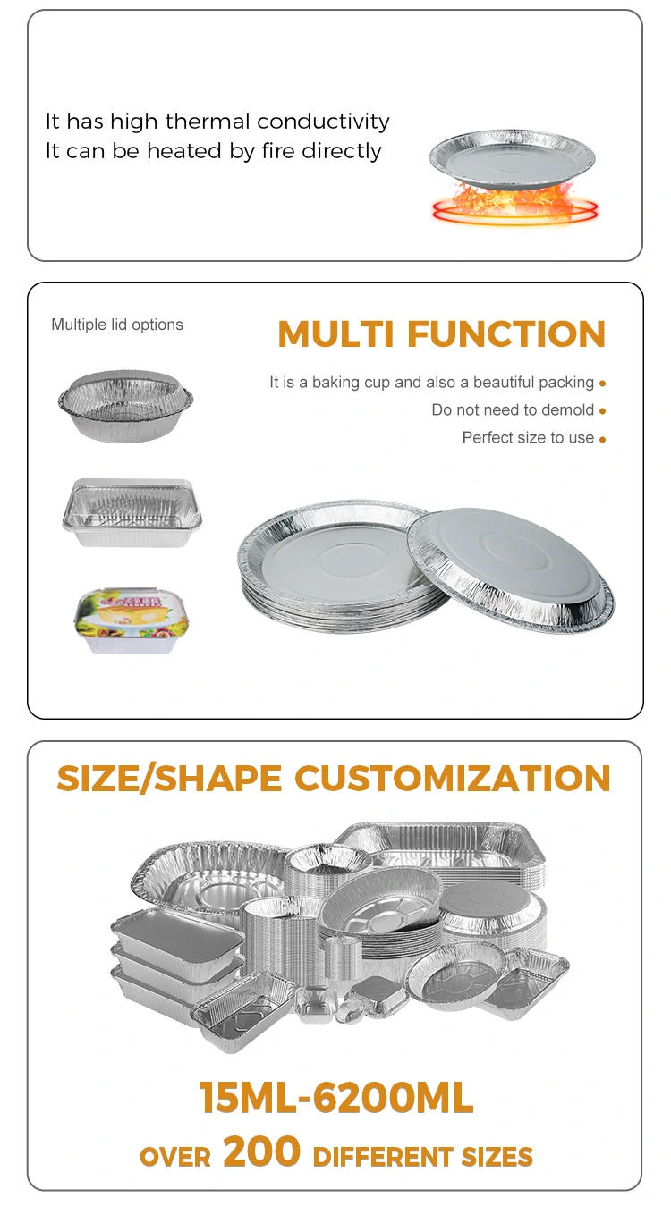 Die Trapezform dieses Produkts fügt nicht nur Ästhetik hinzu, sondern macht es auch einfach, zu stapeln und zu speichern, was den Speicherplatz effektiv spart. Gleichzeitig macht es dieses Design bequemer, Gegenstände aufzunehmen, und es wird nicht einfach in freier Wildbahn abrutschen, was die Nutzungssicherheit erheblich verbessert. Darüber hinaus verfügt der 10 -Zoll -Pizza -Aluminiumfolien -Folienbehälter mit Pizza, das sich perfekt für Picknicks im Freien eignet. Sie können es jederzeit und überall mitnehmen und leicht mit irgendeiner Gelegenheit fertig werden, sei es zu Hause oder im Freien.