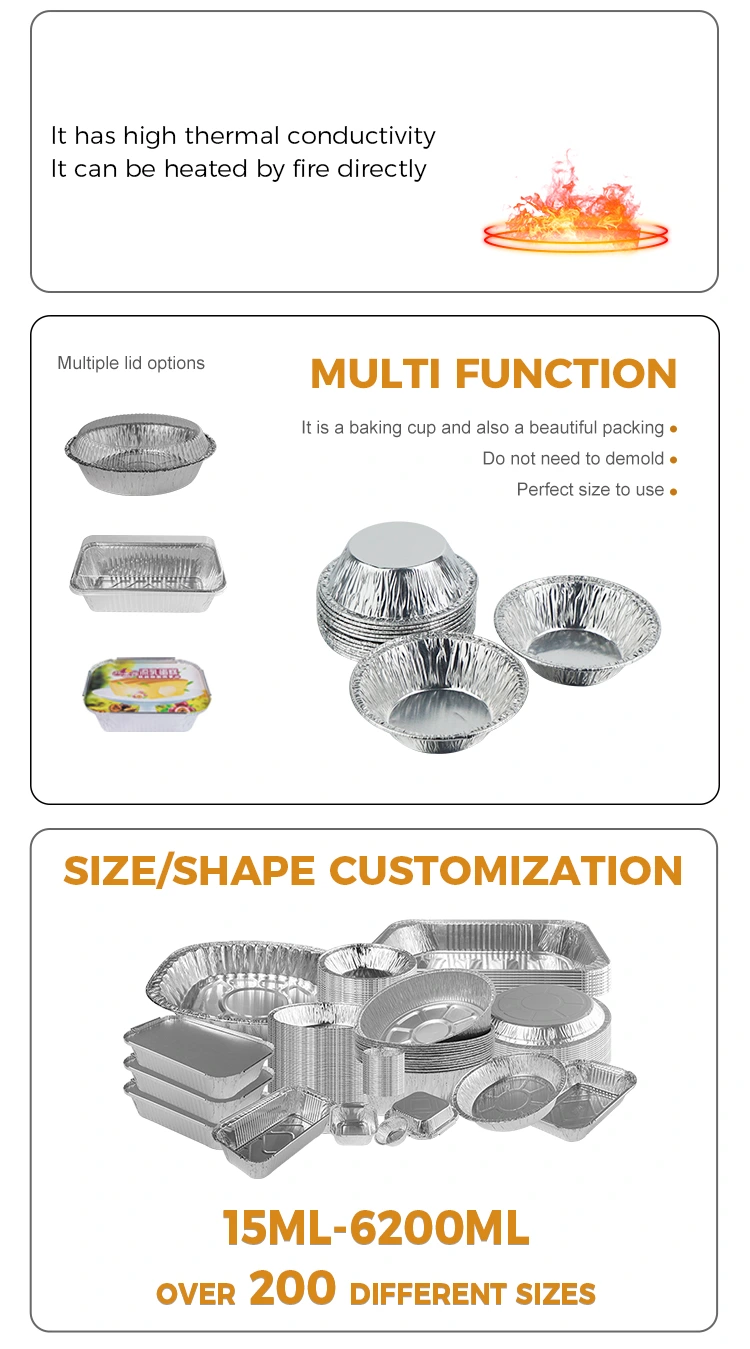 Foshan Yunchu Aluminium Foil Technology Co., Ltd.s Einweg-Eierkuchenform aus silbernem Aluminiumfolienbehälter, der sich auf fortschrittliche automatisierte Produktionslinien und strenge Qualitätskontrollen verlässt, verarbeitet den Yunchu Aluminiumfolien-Einweg-Eierkuchenbehälter aus silberner Aluminiumfolie mit lebensmittelechten Materialien und hervorragender Leistung, eignet sich für mehrere Haushalts- und Gewerbeszenarien und macht das Backen sorgenfreier und köstlicher.