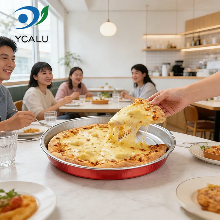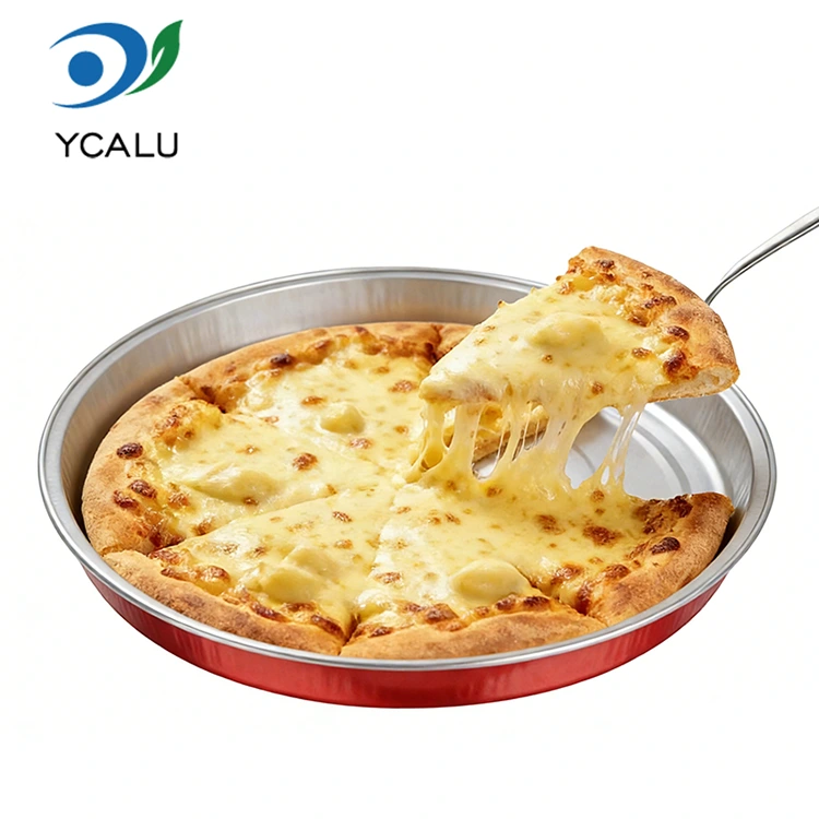 Hot-Tags: Einweg-Pizzapfanne, verpackt in runden Aluminiumfolienbehältern