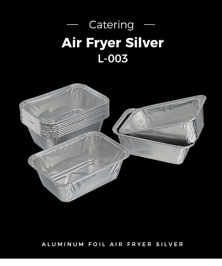 • Einweg-Behälter aus silberner Aluminiumfolie in rechteckiger Back-LuftfritteuseEinweg-Behälter aus silberner Aluminiumfolie in rechteckiger Back-Luftfritteuse