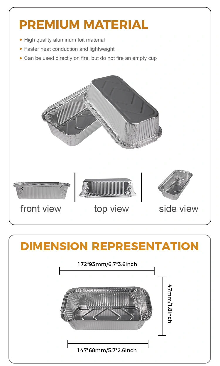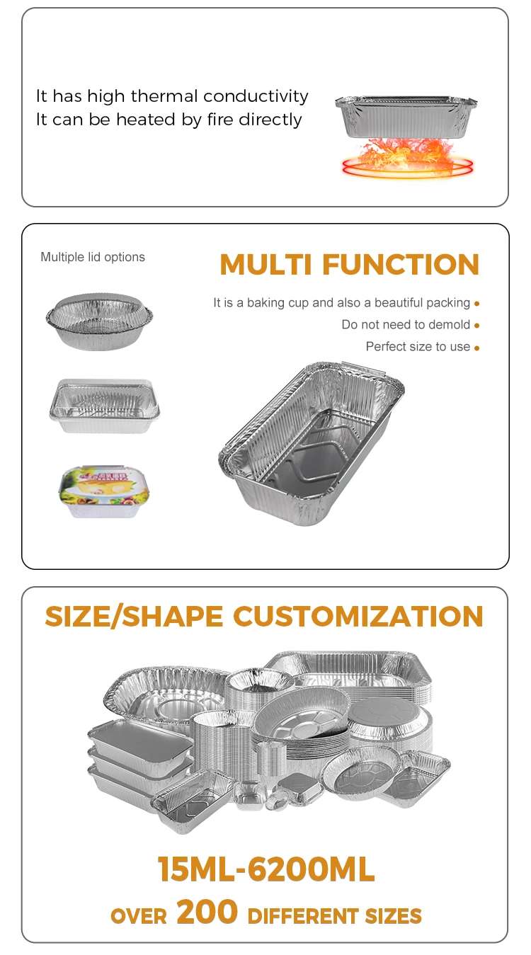 Die Einweg -Rechteckback -Silber -Aluminiumfolienbehälter aus Yunchu Aluminiumfolienlieferant ist ein vielseitiges Küchenwerkzeug, das für verschiedene Kochmethoden wie Grillen, Heißtopf, Gratin, Takeaway -Verpackung und vieles mehr geeignet ist. Dieser Behälter ist kompakt genug, um eine Vielzahl von Töpfen und Geräten anzupassen, und erhält eine Vielzahl von Größen, um den Bedürfnissen verschiedener offener Flammengrills zu erfüllen. Es kann verwendet werden, um verschiedene Lebensmittelprodukte wie Luftfritteusen und andere Geräteanwendungen, Wärme und Ölfestigkeit, einfaches Backen herzustellen.