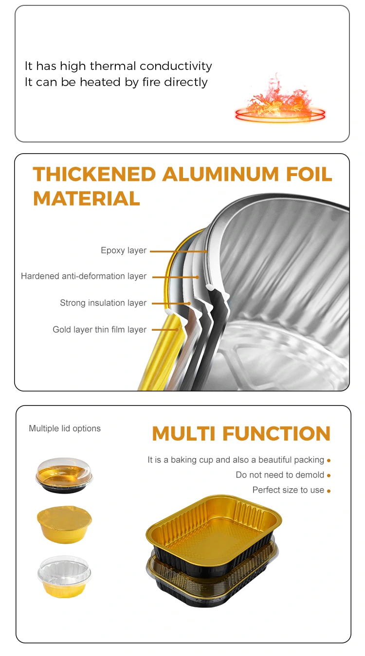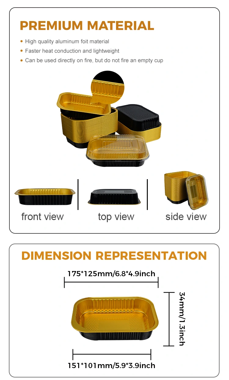 Die rechteckigen, leichtwandigen Einweg-Aluminiumfolienbehälter zum Mitnehmen für die Gastronomie des Aluminiumfolienlieferanten Yunchu bestehen aus Lebensmittelqualität. Sie wurden streng verarbeitet und geprüft und haben keinen eigenartigen Geruch. Der gesamte Produktionsprozess erfolgt in einer sauberen und staubfreien Werkstatt ohne schädliche Zusatzstoffe. Auch Reis, Fleisch, Suppe usw. können in direktem Kontakt stehen. Dieser Aluminiumfolienbehälter hat die US-amerikanische FD-A-Zertifizierung für Lebensmittelqualität bestanden und entspricht strikt den FDA-Standards. Nach professionellen Tests liegt die Menge der Aluminiummigration weit unter dem angegebenen Grenzwert und der Test entspricht den Standards. Wir haben einen offiziellen Testbericht erhalten. Es kann nicht nur in der heimischen Gastronomie eingesetzt werden, sondern erfüllt auch die Anforderungen für den Export ins Ausland voll und ganz. Doppelte Garantie: Egal ob Fast-Food-Kette, Privatküche oder grenzüberschreitender Imbiss, es ist einsetzbar. Es ist zuverlässig und hält extremen Temperaturunterschieden von -20 °C bis 250 °C problemlos stand. Von der Kühlung und Gefrierlagerung im Kühlschrank bis hin zum Erhitzen in der Mikrowelle, zum Backen im Ofen und sogar zum Erhitzen mit offener Flamme (erfordert Wärmeisolierwerkzeuge) kann es zum Verpacken heißer Suppen und warmer Gerichte zum Mitnehmen verwendet werden. Selbst wenn der Behälter längere Zeit warm gehalten wird, wird er weder weich oder verformt, noch schmilzt er und es entstehen keine schädlichen Gase; Nachdem der Verbraucher das Essen erhalten hat, muss er den Behälter nicht wechseln, sondern ihn zum Erhitzen direkt in die Mikrowelle stellen. Darüber hinaus leitet es die Wärme gleichmäßig, sodass es beim Erhitzen nicht zu einer lokalen Überhitzung oder zum Einklemmen von Lebensmitteln kommt. Dadurch bleibt der Geschmack des Lebensmittels weitestgehend erhalten. Ob gebackener Reis, Eintöpfe oder Grill- oder gebackene Halbfabrikate, es eignet sich zum Verpacken.