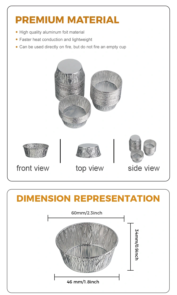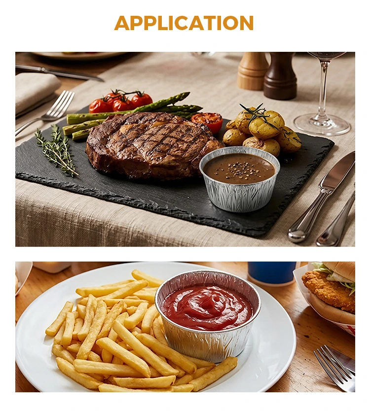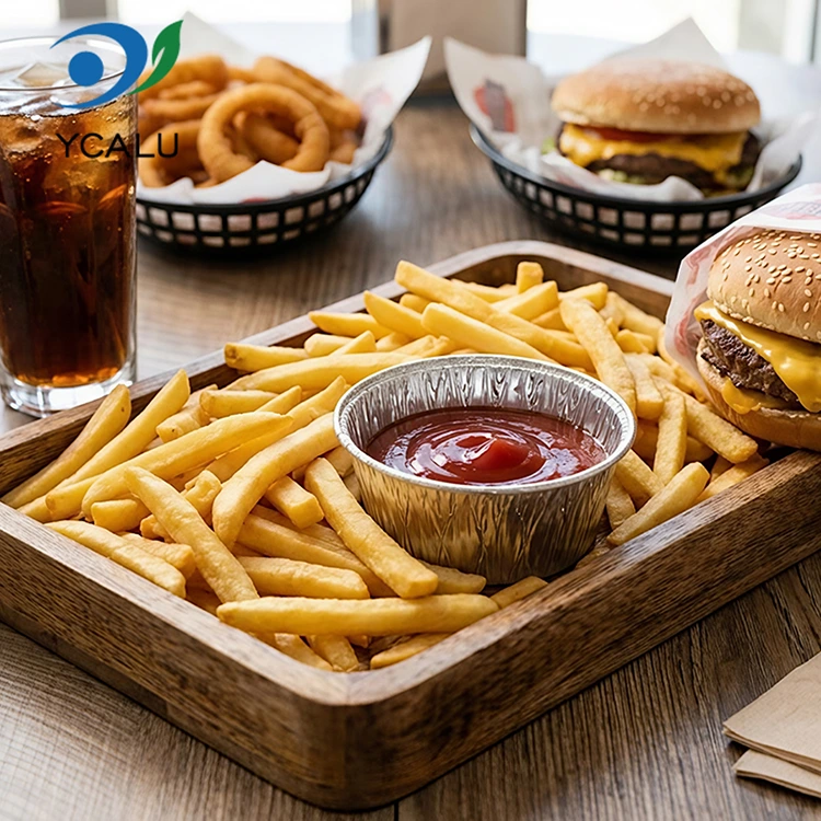 Yunchu Aluminiumfolienlieferant, Einweg-Luftfritteuse mit runder Soße, silberner Aluminiumfolienbehälter, Aluminiumfolienmaterial in Lebensmittelqualität, kein Geruch, keine Schwermetallrückstände, entspricht den Lebensmittelkontaktstandards, hohe Reinheit und stabile chemische Eigenschaften. Selbst wenn es mit sauren Soßen gefüllt und auf hohe Temperaturen erhitzt wird, werden keine Schadstoffe freigesetzt und Sie können sich bei direktem Kontakt mit Lebensmitteln vollkommen sicher fühlen. Das Produkt hat die FDA-Zertifizierung für Lebensmittelqualität bestanden und hält sich strikt an die FDA 21 CFR-bezogenen Standards. Nach professionellen Migrationstests und Schwermetallerkennung liegt der Gehalt an Schadstoffen wie Blei und Cadmium weit unter der Sicherheitsschwelle und die Qualifikationen sind vollständig. Ob für den privaten oder gewerblichen Gebrauch, Sie können beruhigt wählen. Verwenden Sie es zum Portionieren von Saucen zum Marinieren von Fleisch, Salatdressings für Gemüse und Essiggerichten zum Dippen von Knödeln. Die Portionen sind genau richtig, ohne zu verschwenden. Es kann auch die Übertragung von Gerüchen verhindern und kann ordentlich im Kühlschrank aufbewahrt werden, ohne Platz zu beanspruchen. Takeaway-Händler lagern darin Saucen, die versiegelt und auslaufsicher sind und sauber an die Kunden geliefert werden. Ganz gleich, ob es sich um Ketchup, süße Chilisauce oder dicke Sesamsauce handelt, es besteht keine Gefahr, dass Lebensmittel auslaufen und verschmutzt werden. Sogar für Picknicks und Camping im Freien können Sie ein paar davon mitnehmen und sie zum Aufbewahren von Dip-Saucen verwenden. Es ist leicht und nimmt keinen Platz ein. Sie können es direkt nach Gebrauch wegwerfen. Sie müssen nicht viele schmutzige Behälter mit nach Hause schleppen. Es geht vor allem um Leichtigkeit und Störungsfreiheit.