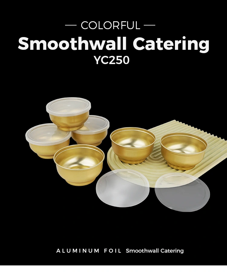 Yunchu-Fabrik zur Herstellung von Aluminiumfolien, Einweg-Aluminiumfolienbehälter mit runder kleiner goldener Schüssel, ein einzigartig geformter Aluminiumfolienbehälter in Schüsselform. Dieser Behälter ist für die Verpackung von vorgekochten Mahlzeiten, Reis, Nudeln usw. konzipiert. Er ist praktischer als zum Mitnehmen, wirtschaftlicher als auswärts essen und schmackhafter als Mahlzeitenersatz-Shakes/Kekse. Einzeln verpackte Schüsseln sind nicht anfällig für Hautschäden, leicht zu transportieren, aus ausgewählten robusten und langlebigen Materialien hergestellt, einzeln verpackt, vakuumsterilisiert, leicht zu öffnen und zu essen, in der Lage, die Frische beim Kochen bei 121 °C zu bewahren. Die Originalschale kann nicht in der Mikrowelle erhitzt werden. Die Aluminiumschalen sind in verschiedenen Ausführungen erhältlich und zur Aufbewahrung stapelbar. Sie können gestapelt werden, um die Küche aufgeräumt und organisiert zu halten. Unterschiedliche Größen erfüllen unterschiedliche Verpackungsanforderungen – eine Schüssel nach der anderen ist genau richtig.