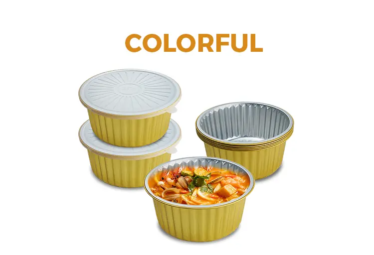Yunchu lieferant Diese Einweg-Dichtungs-Golden-rund-Aluminiumfolie-Behälter können hochtemperaturresistente durchscheinende PP-Deckel liefern, laminierte Hitze-Aluminiumfolie-Deckel ist optional und adoptiert staubdichtes und leckes Sicherheitsschutz für den Mund des Behälters, das für vorgefertigte goldene Schale geeignet ist. Für die meisten großvolumigen Küche und wir haben einen maßgeschneiderten Service, der das Logo, das Musterdruck usw. anpassen kann, um die Markenidentität anzuzeigen.