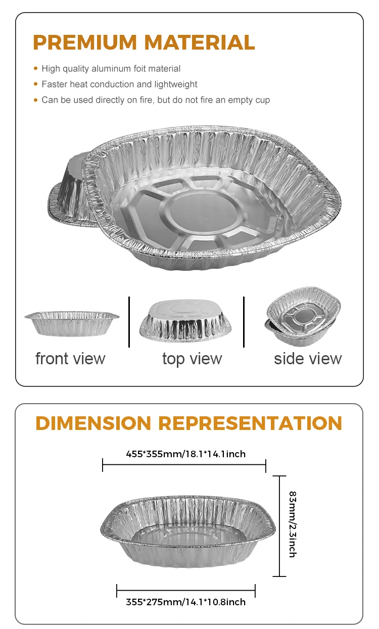 Yunchu Aluminiumfolie Großhandel große Kapazität gegrillte Hühner -Griddel -Aluminiumfolie -Behälter, große Kapazitäten können an eine breite Reichweite angepasst werden. Die Gesamtstruktur wird in Außen- und anderen Szenarien erhitzt und verwendet, und kombiniert Versteifungen und den Boden der regelmäßigen konkaven und konvexen Form, so dass ihre Haltbarkeit und Sicherheit garantiert sind.