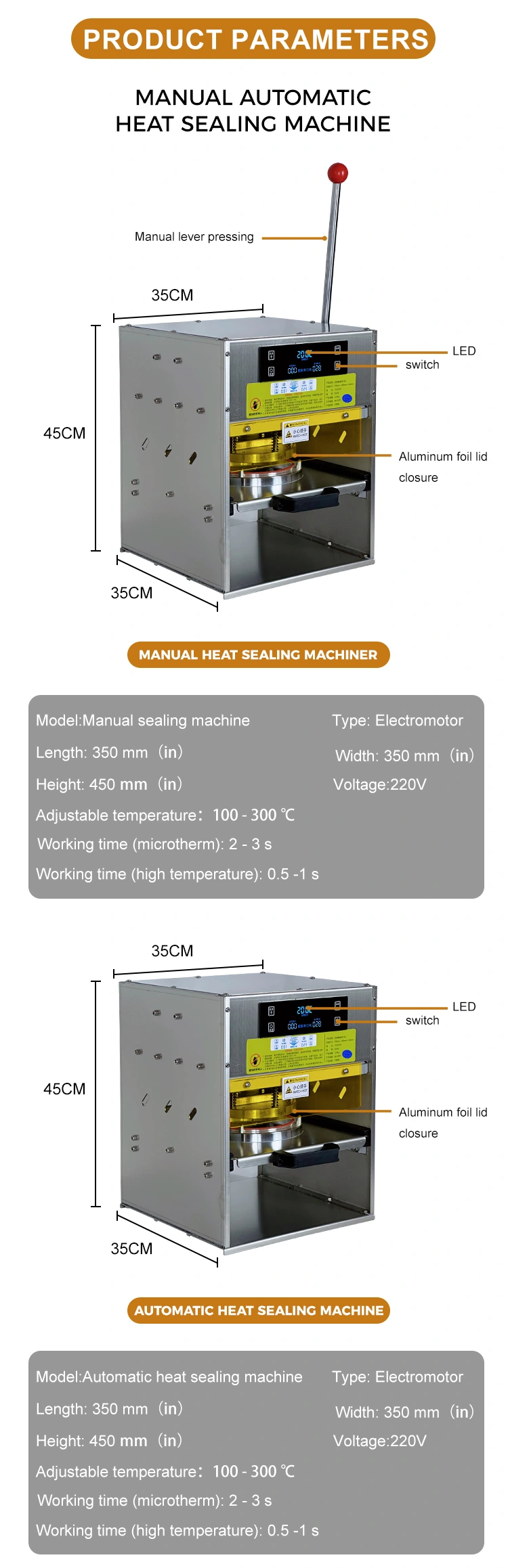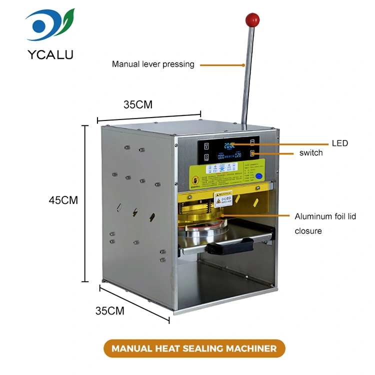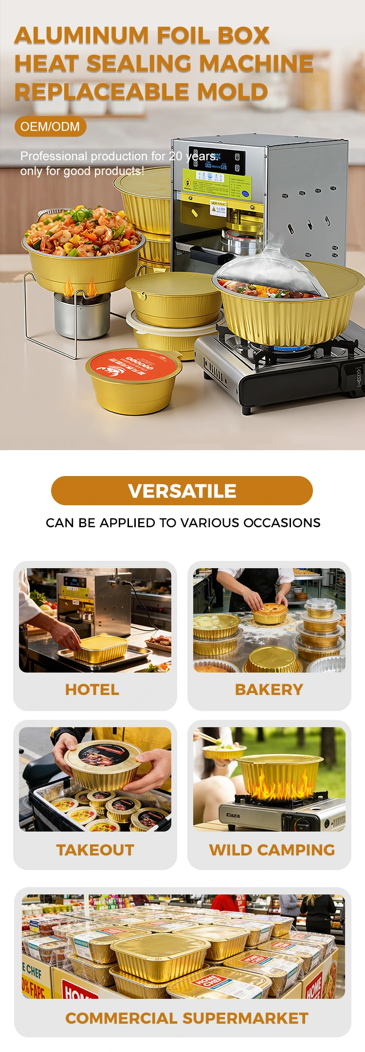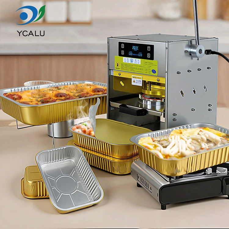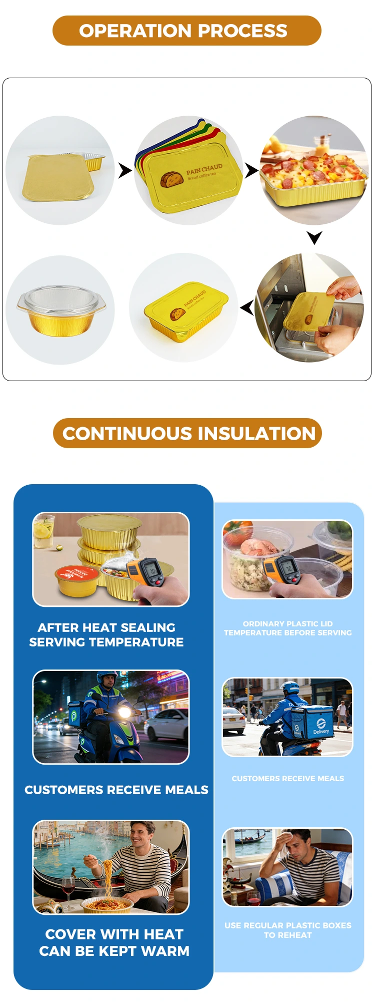 Hot-Tags: Manuelle Heißsiegelmaschine mit goldenen Aluminiumfolienbehältern