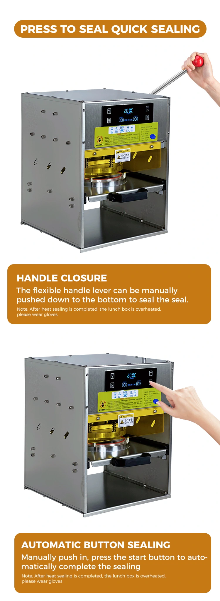 Effizienter: Keine Notwendigkeit, separate Dichtungsfolien zu verwenden. Die Lunchboxen und Heißsiegelgeräte sind sofort einsatzbereit. Der manuelle Betrieb erfordert kein Warten auf das Vorheizen. Kleinserienaufträge können schnell bearbeitet werden, auch Großaufträge können stetig vorangetrieben werden. Es kann problemlos mit Szenarien wie Hauptspeisezeiten und plötzlichen Anstiegen der Festivalbestellungen umgehen.