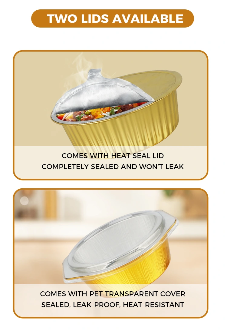 Yunchu verfügt über eine eigene Fabrik und ist Hersteller und Lieferant von manuellen Heißsiegelmaschinen mit goldenen Aluminiumfolienbehältern in China. Es verwendet Materialien in Lebensmittelqualität und ist sicher und sorgenfrei. Es besteht aus Aluminiumfolie/PP-Material in Lebensmittelqualität, hat maßgebliche Sicherheitstests bestanden, ist geruchlos, beständig gegen hohe und niedrige Temperaturen (-20℃ bis 220℃) und kann direkt in der Mikrowelle erhitzt, im Ofen gebacken oder zur Lagerung eingefroren werden, wodurch es den vielfältigen Verarbeitungs- und Konservierungsanforderungen von Lebensmitteln gerecht wird und den Verbrauchern ein starkes Gefühl der Sicherheit vermittelt.