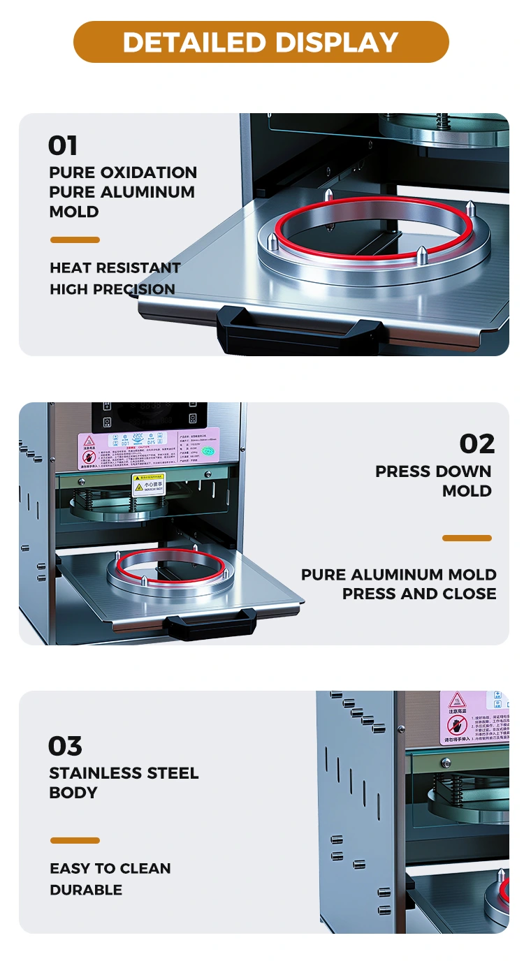 Besser kontrollierbare Kosten: Die Kombination einer manuellen Heißsiegelmaschine mit goldenen Aluminiumfolienbehältern erfüllt die beiden Hauptanforderungen „Verpackungsbehälter + Versiegelungsausrüstung“, wodurch separate Einkäufe überflüssig werden und die Beschaffungskosten gesenkt werden. Gleichzeitig werden After-Sales-Verluste durch beschädigte Verpackungen und verdorbene Lebensmittel reduziert und indirekt die Gewinnspanne erhöht.