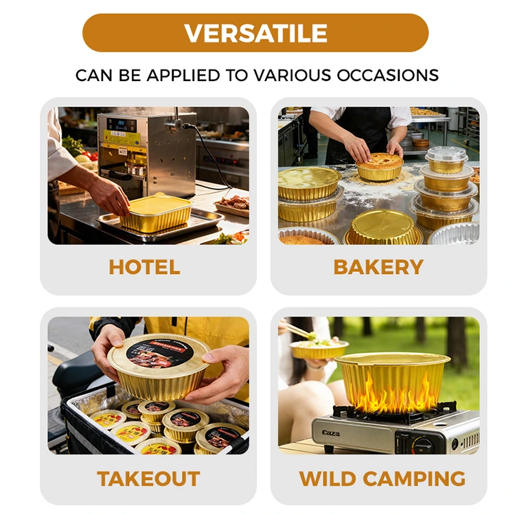 Yunchu ist ein professioneller Hersteller und Lieferant von Aluminiumfolienbehältern in China. Unsere manuelle Heißsiegelmaschine mit goldenen Aluminiumfolienbehältern bietet die doppelten Vorteile von Aussehen und Festigkeit. Es hat sich zur bevorzugten Kombination für die Gastronomie zum Mitnehmen, die Lieferung von Gruppenmahlzeiten und die Industrie für verzehrfertige Lebensmittel entwickelt. Es kann nicht nur die Qualität der Marke hervorheben, sondern auch das Problem der Verpackung lösen, die Kosten senken, die Effizienz für Händler steigern und den Verbrauchern ein beruhigendes Erlebnis bieten.