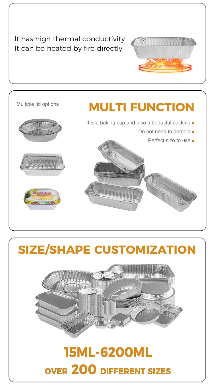 Der von Yunchu Aluminiumfolienlieferant bereitgestellte Silberfolienbehälter mit Rechteck -Luftbraten ist für eine Vielzahl von Gelegenheiten geeignet, unabhängig davon, ob es sich um einen Grill im Freien oder ein Familienversammlung handelt. Händler können Muster anpassen und nach ihren Bedürfnissen drucken, wodurch diese Behälter eine einzigartige Wahl für die Verpackung zum Mitnehmen machen, die offene Flammenheizung und Öllampenheizung unterstützt und Hitze gleichmäßig durchführt, um sicherzustellen, dass das Essen gleichmäßig erhitzt wird und nicht an der Pfanne haftet. Es kann unmittelbar auch wenn in der Luftfritteuse eingesetzt werden, und das konkave und konvexe Design am Boden erhöht die Reibung und verhindert das Rutschen. Die Versteifungen an den Seiten verbessern die Robustheit des Produkts, während das Semming -Design sicherstellt, dass ein eng an der Deckel passt und effektiv in der Temperatur der Nahrung einrastet.