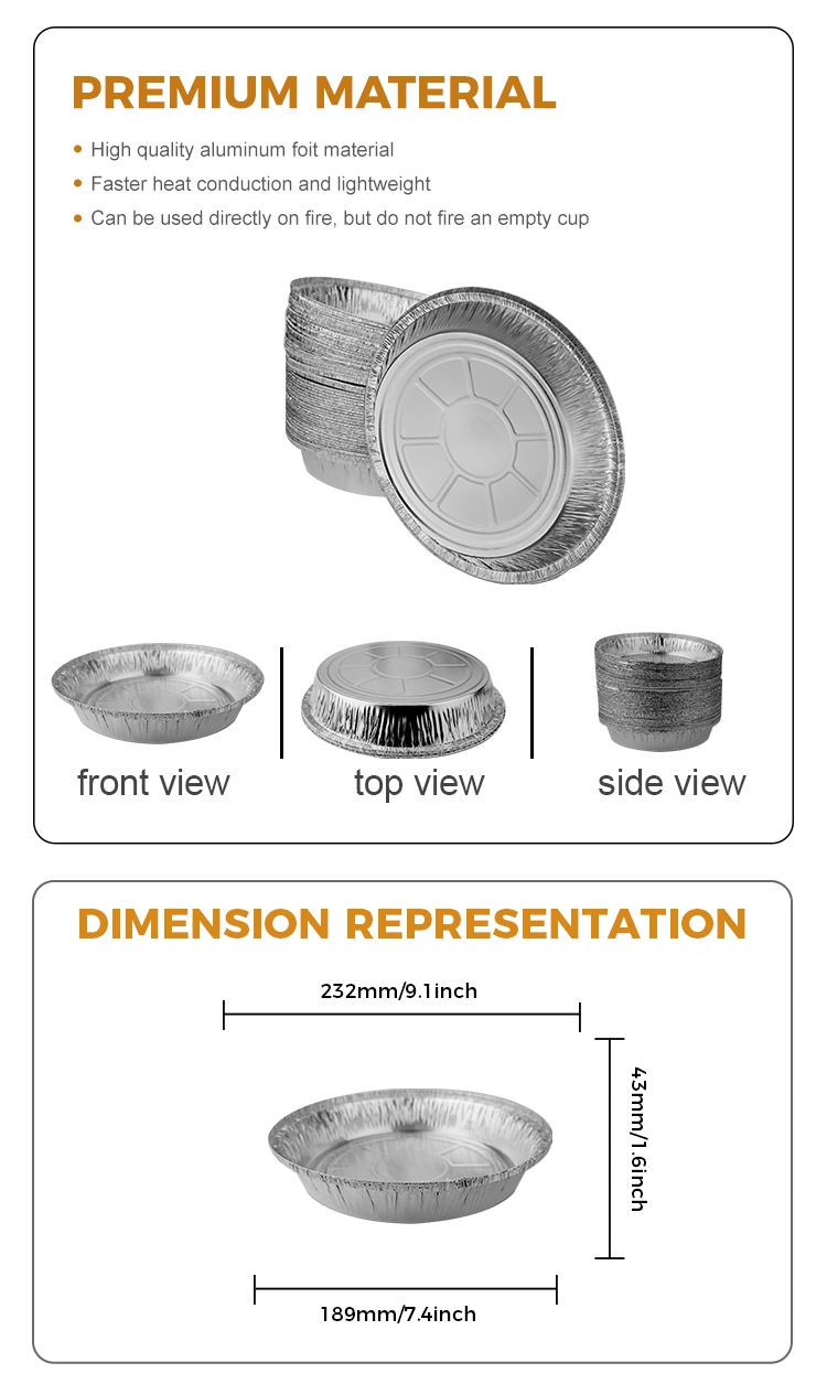 Yunchu Aluminiumfolienlieferant produziert Großhandel Rundluft -Fritteusofen -Silber -Aluminiumfolienbehälter, Silber Aluminiumfolie Lebensmittelzertifizierung, das Material wurde verdickt, direkter Kontakt mit Lebensmittelsicherheit und Seelenfrieden kann direkt mit hoher Machung und Hiefenstöfe, ohne dass es mit hoher Machung, ohne Temperatur, und mit hoher Oben, ohne Ofen, usw., usw. -20 ° C ~ 250 ° C können nicht eingefügt oder gebrochen werden. Wählen Sie verdickte hochwertige Materialien, Umweltschutz und freie Umweltverschmutzung. Verwenden Sie mehr. Die runden Luftbraten -Ofen -Aluminiumfolie -Folienbehälter sind für Szenen wie Restaurants, Cantine Catering, Kettengeschäfte, Kühlkost, Imbiss usw. geeignet, egal ob für den Großhandel oder die Verwendung von Großhandel oder Einzelhandelsgebrauch, diese Backpfanne hat Sie abgedeckt. Das Backblech hat eine bestimmte tragende Kapazität und Haltbarkeit und kann seine Form auch beim Stapel aufrechterhalten und ist während des Transports nicht einfach zu verformen. Um die Benutzererfahrung weiter zu verbessern, können Benutzer sie auch mit Aluminiumfoliendeckel und vollständig transparenten PET -Deckel verwenden.