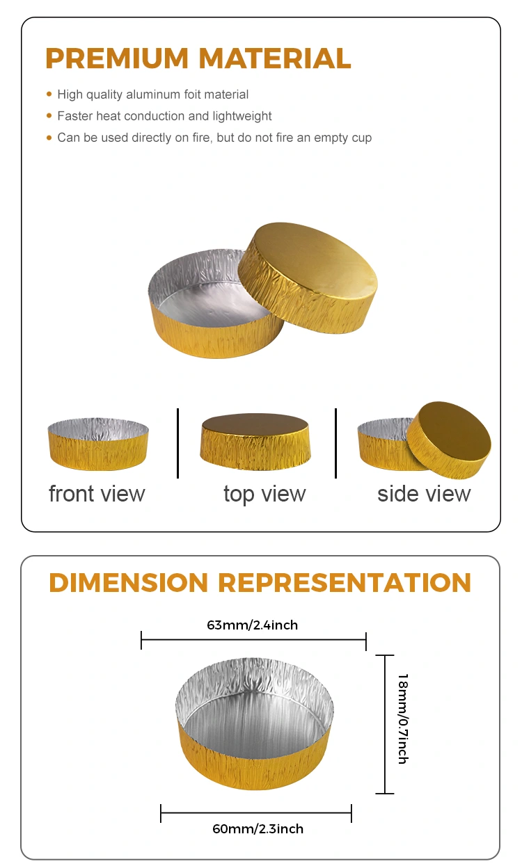 Dieser runde kleine runde kleine Back-Aluminiumfolie-Foil-Lebensmittelbehälter wird von Yunchu Factory angepasst und besteht aus Silber-Aluminiumfolienmaterial, Modell J35-16. Es ist ideal, um kleine Portionen Lebensmittel wie Snacks und Gelees zu servieren, um den Bedürfnissen moderner Verbraucher für kleine und vielfältige Lebensmittelportionen zu erfüllen. Es ist bequem, alleine zu genießen oder mit anderen zu teilen.