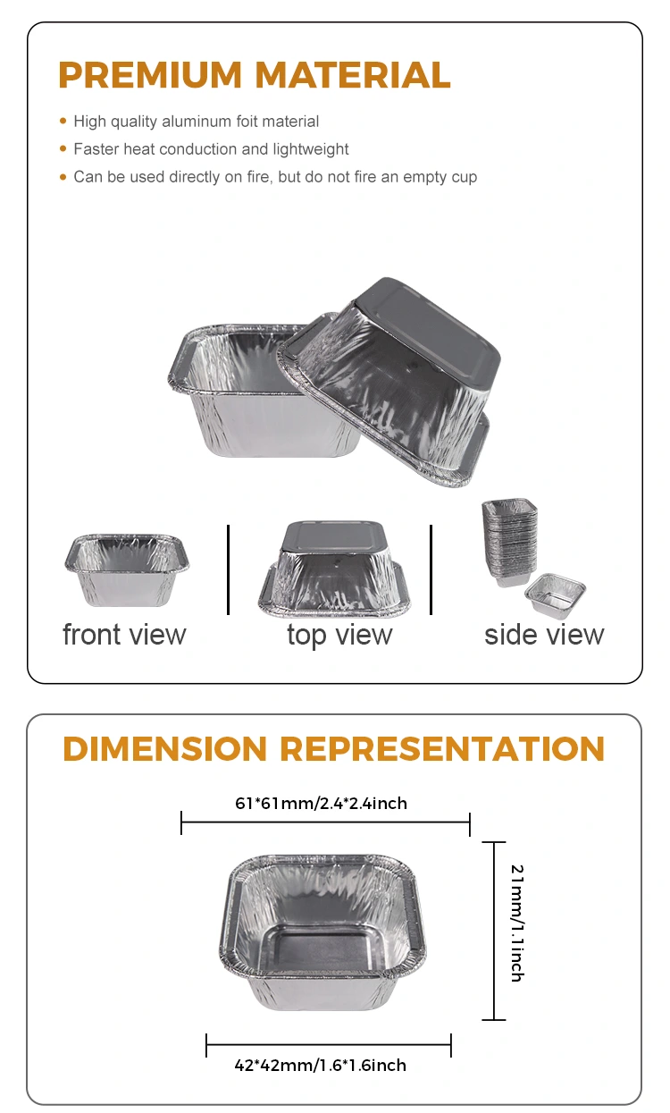 Yunchu Aluminiumfolienlieferant Square Air Fryer Silber Aluminiumfolienbehälter in Catering, Home Air Fryer -Produktion, mit Takeaway -Lieferung, Buffets Saucen, Banketten und anderen Orten, aber auch für gedämpfte Eier, Schokolade, Kekse, kleine Cakes, Saucen und andere Bereiche geeignet, die mit Nahrungswaren angewendet werden, mit Nahrungsmitteln, mit Nahrungsmitteln, können Sie mit Nahrungsmitteln oder Saucen, die mit Nahrungsmitteln verwendet werden, können mit Nahrungsmitteln oder Saucen angewendet werden, können mit Nahrungsmitteln oder Saucen, die mit Nahrungsmitteln eingesetzt werden, mit Nahrungsmitteln oder Saucen, können mit einem Saucen. Kleine Aluminiumfolienbecher können weggelegt werden, während sie den Gerichten Punkte hinzufügen, aber auch ohne Belastung gewaschen und verwendet werden können.